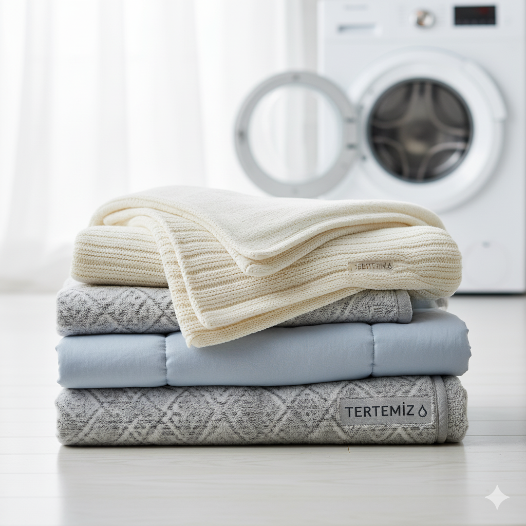 Tüm yorgan ve battaniyeleriniz antibakteriyel ürünlerle yıkanarak hijyen kazanır.